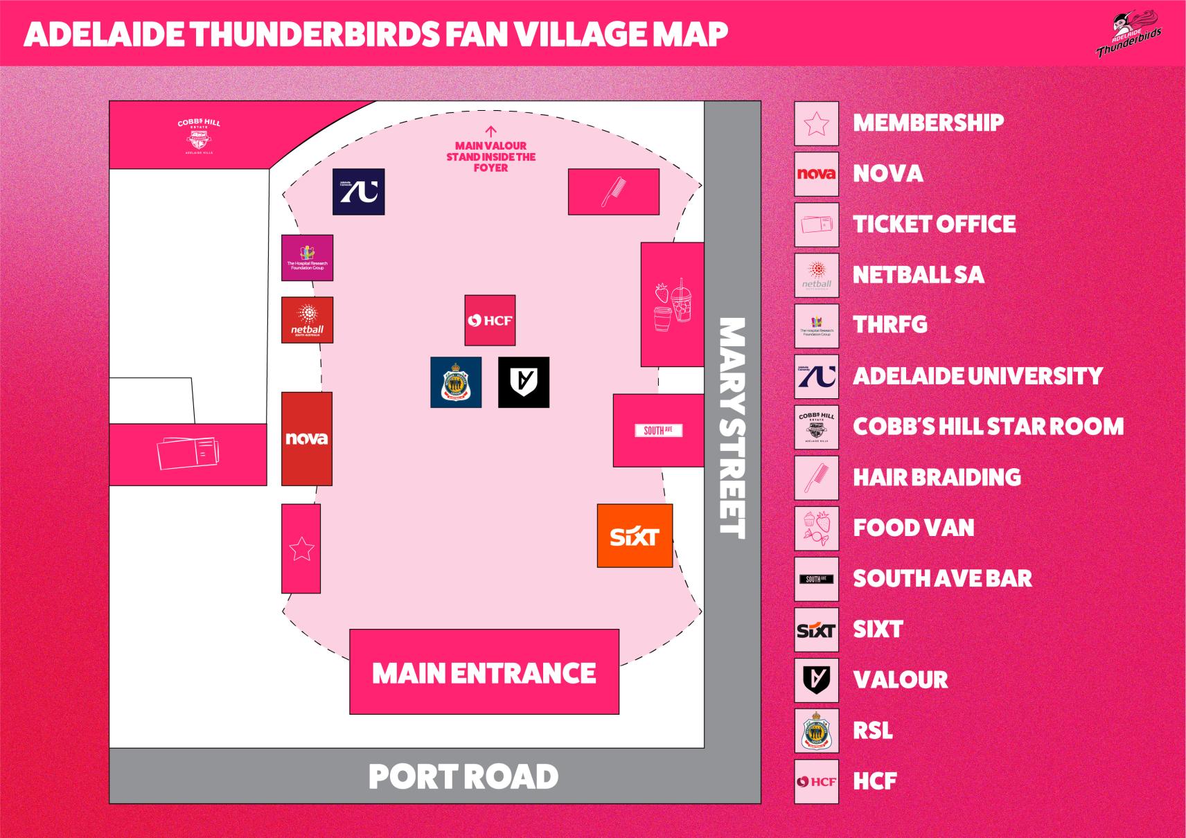 Adelaide Thunderbirds Fan Village Map